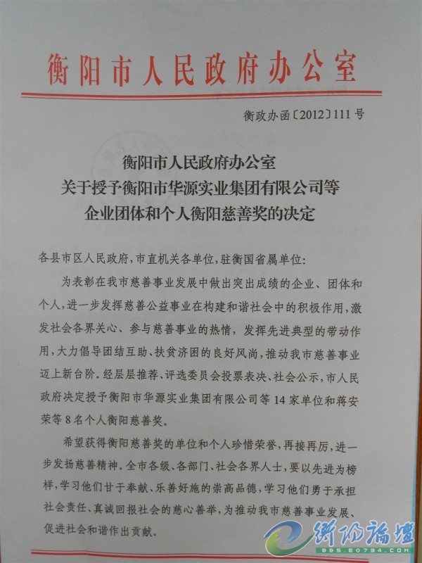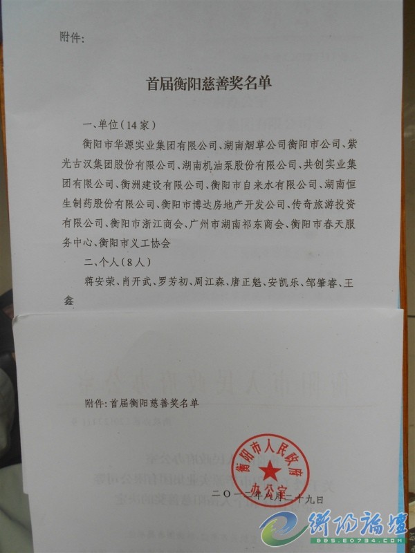 我司榮獲首屆衡陽慈善獎