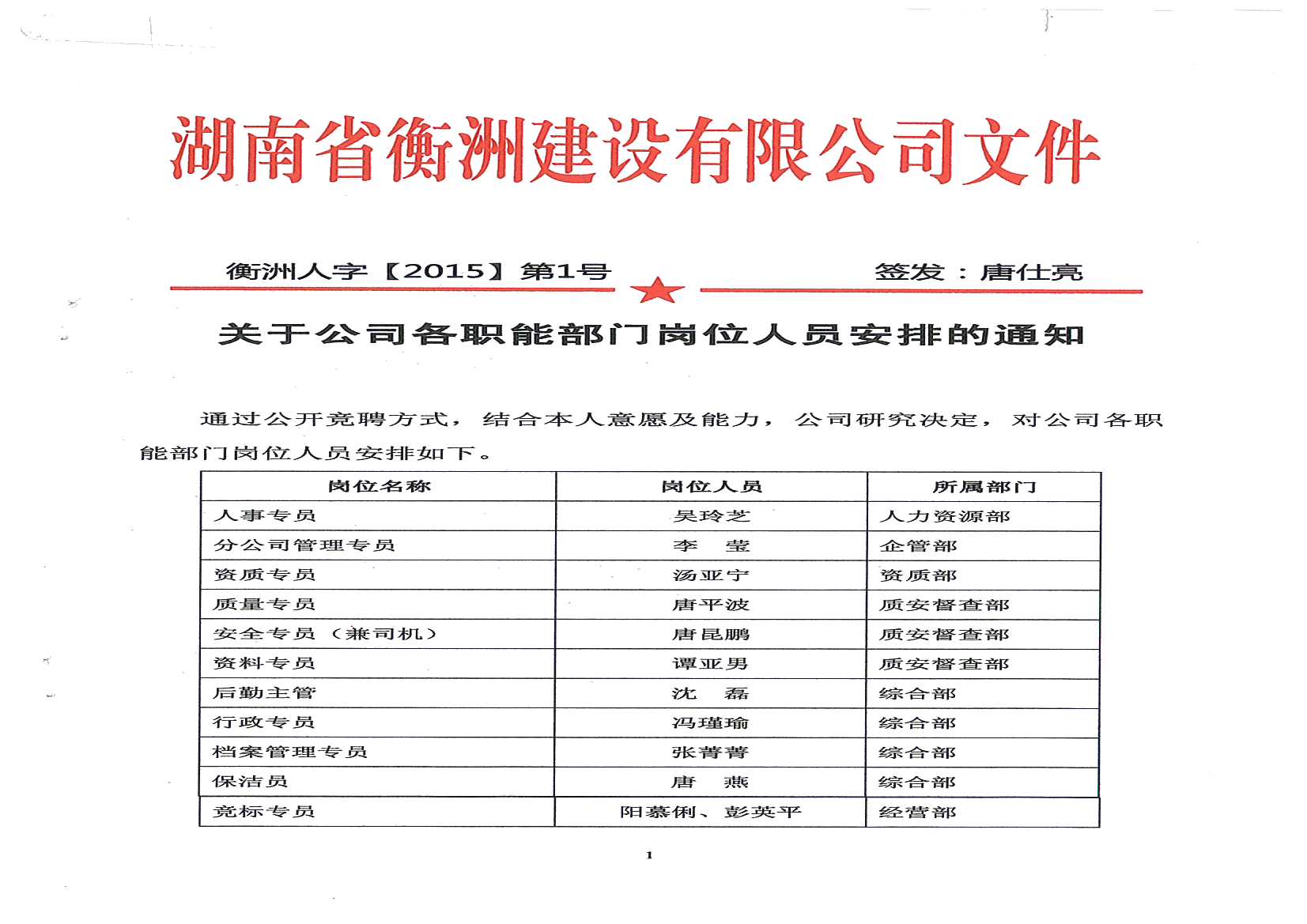 關(guān)于公司人事任命的通知