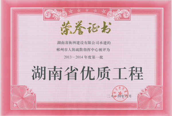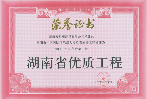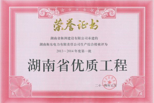2013~2014年度第一批湖南省優(yōu)質工程評選結果已公示,我司共五個項目獲獎,其中衡陽市項目四個,郴州項目一個,分別為湖南衡東電力有限責任公司生產綜合樓項目、衡陽市公安局石鼓分局業(yè)務用房項目、衡陽市中醫(yī)醫(yī)院住院部大樓及附屬樓工程項目、創(chuàng)景外灘綜合樓項目及郴州市人防疏散指揮中心項目。